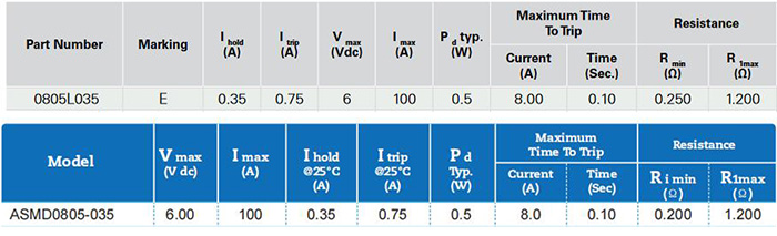 深圳集電通成熟的產(chǎn)品線貼片自恢復(fù)保險(xiǎn)絲ASMD0805-035可替換Littelfuse力特品牌的0805L035,從電氣參數(shù)和指標(biāo)對(duì)比: