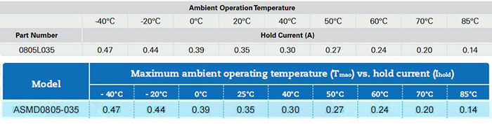 由以上數(shù)據(jù)可看出ASMD0805-035與0805L035參數(shù)完全匹配,可以直接替換。