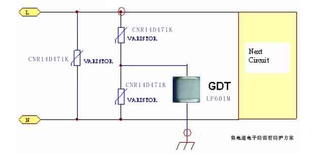 2)氣體放電管和壓敏電阻組合構(gòu)成的抑制電路